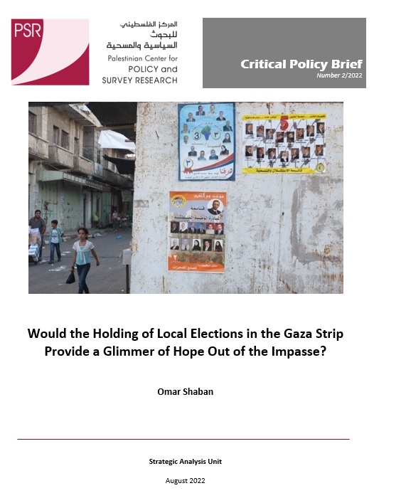 The current difficult economic, social and psychological conditions in the Gaza Strip can only be understood when analyzed in the context of the blockade and repeated wars it has been suffering from since 2007. These conditions must also be placed in the context of internal division and a political failure in which all reconciliation efforts and factional dialogue led nowhere. Even when a consensus emerged over holding general elections for the Legislative Council, the Presidency and the PLO National Council, success remained elusive. Nonetheless, while general elections cannot be held in the foreseeable future, the pressure of the successive crises in the Gaza Strip forces a search for a way out of the impasse. This paper proposes the holding of local elections in the Gaza Strip as a small step that might trigger a gradual wider process. Local elections have been held three times in the northern governorates of the PA without the Gaza Strip’s participation since 2005. The paper argues that these local elections might provide a mechanism to gradually break the impasse and provide an opportunity for change that might enhance the confidence of the local community and its participation in administration and governance, enhance communication and engagement between local municipalities and the world, and might allow attracting projects to address pressing environmental crises and problems in the Gaza Strip. The continuation of the current fait accompli will only have more negative effects on the population, regardless of how much Hamas strives to improve it. The movement has already been hurt in appointing mayors even if it has made an effort to appoint the best in the management of the local bodies.